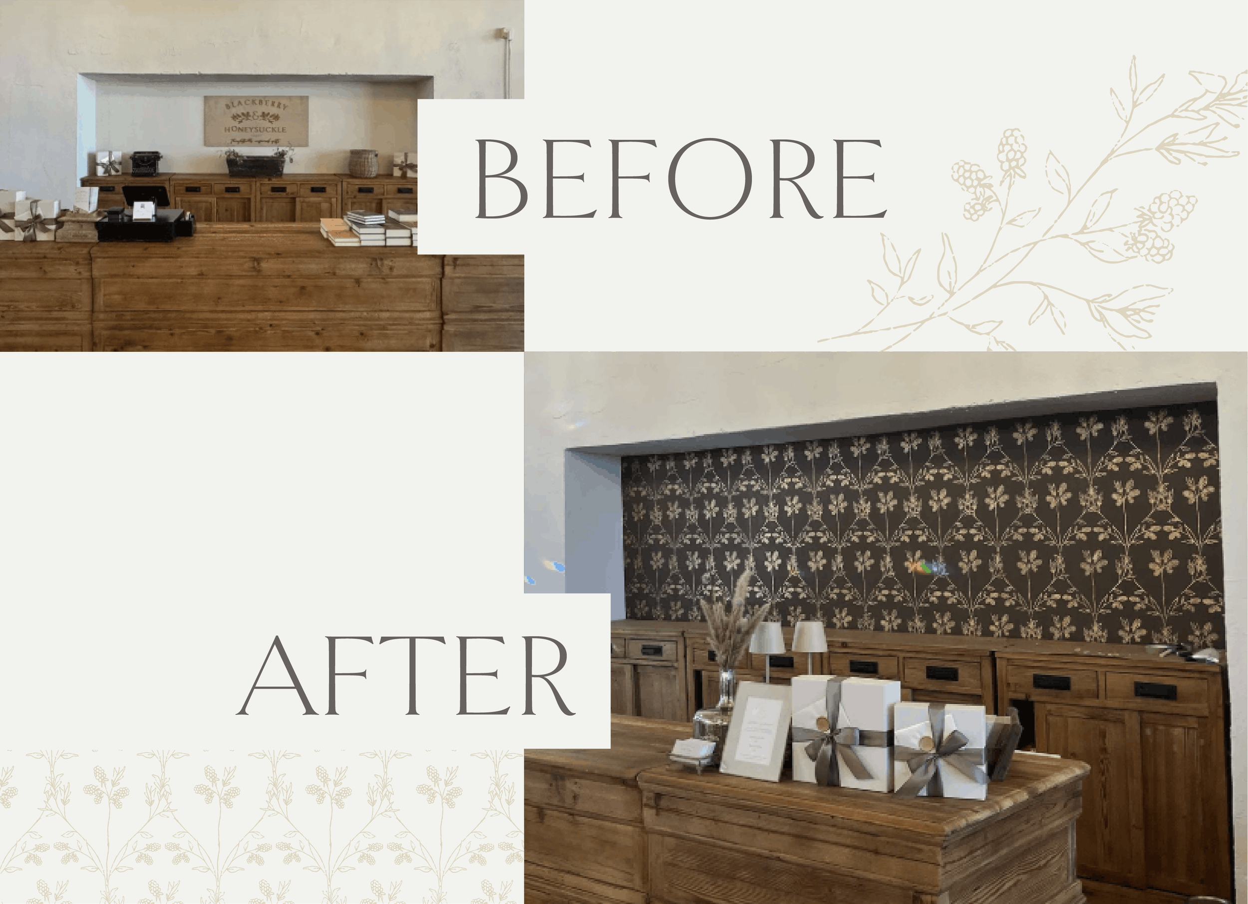 Blackberry & Honeysuckle is a bespoke boutique offering artisan gifts curated thoughtfully and lovingly in beautiful Navasota, Texas. We painted their original murals when they opened in 2019, and they loved them so much that when they moved into a new, larger space they invited us back to design and install 3 beautiful murals to help them feel at home & carry their beautiful branding throughout their new space.