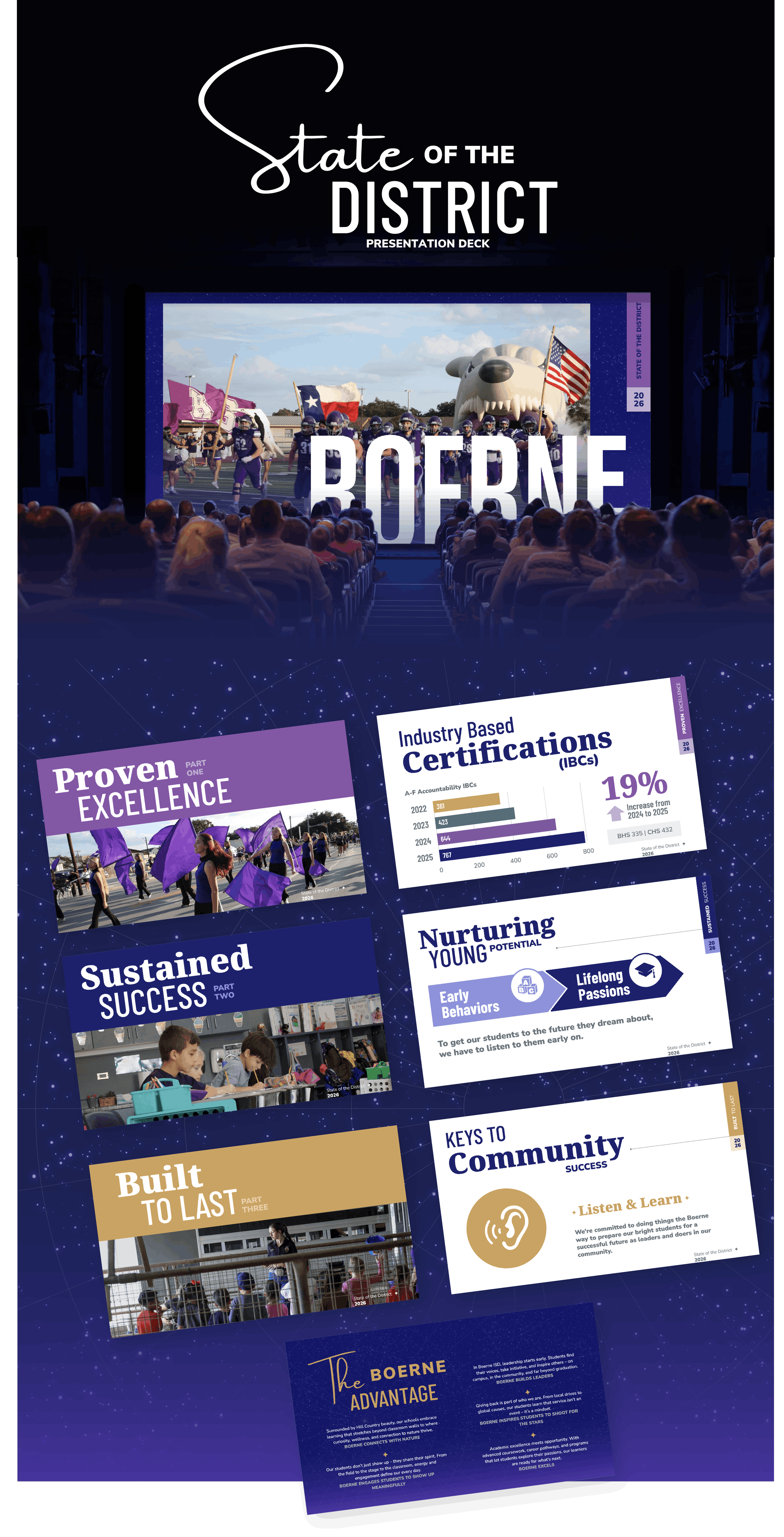 Boerne ISD serves a growing and high-achieving Hill Country community, and we were honored to support their district-wide communications with a cohesive visual approach. Our work focused on creating clarity, energy, and visual consistency across every touchpoint. The result is a polished, engaging communication experience that reflects the strength, pride, and forward momentum of the district.