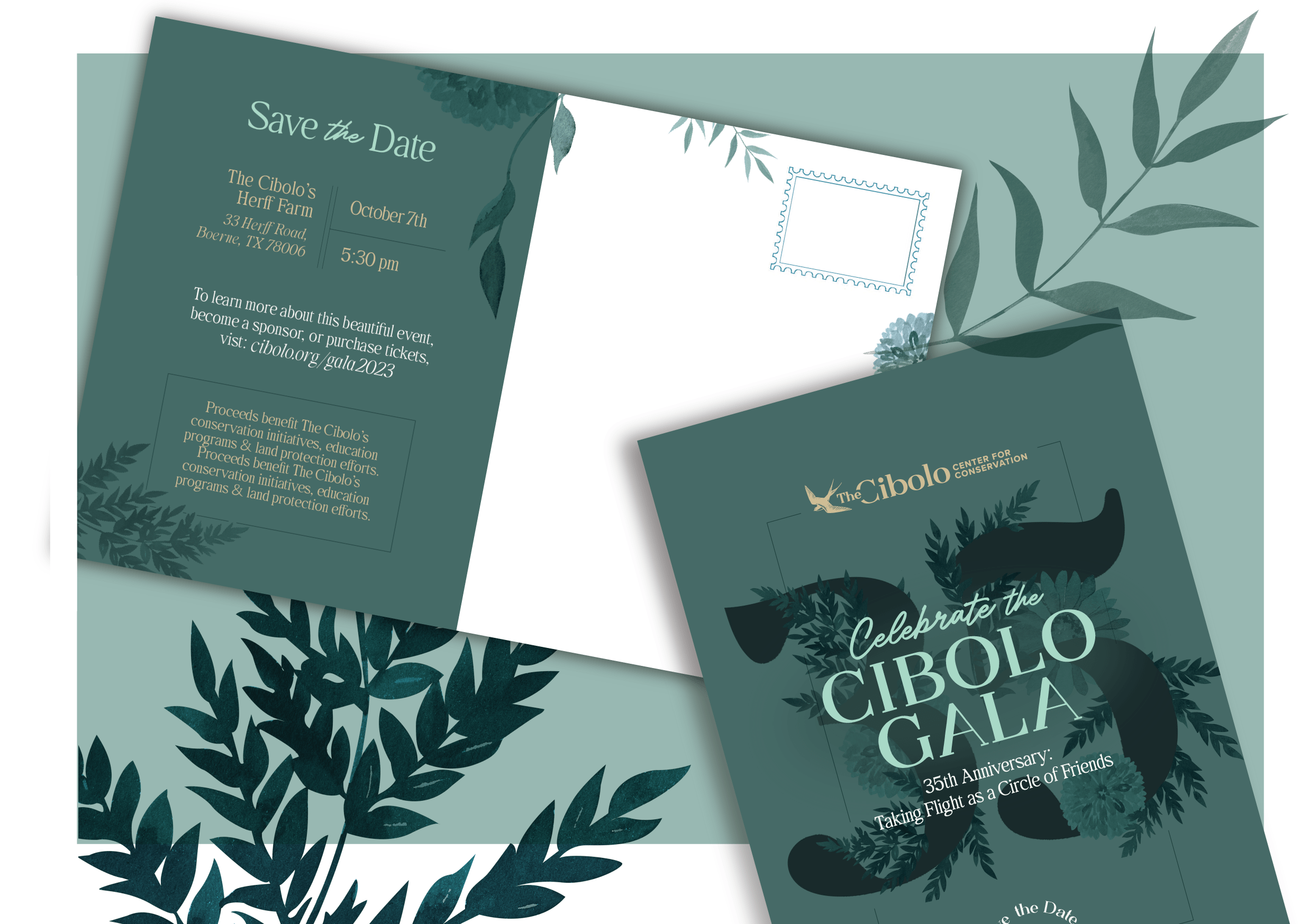 The Celebrate the Cibolo Gala is an elegant, evening fundraiser held annually at the Herff Farm. A full print and digital package was designed to create a seamless branded event from table cards to banners to digital assets.