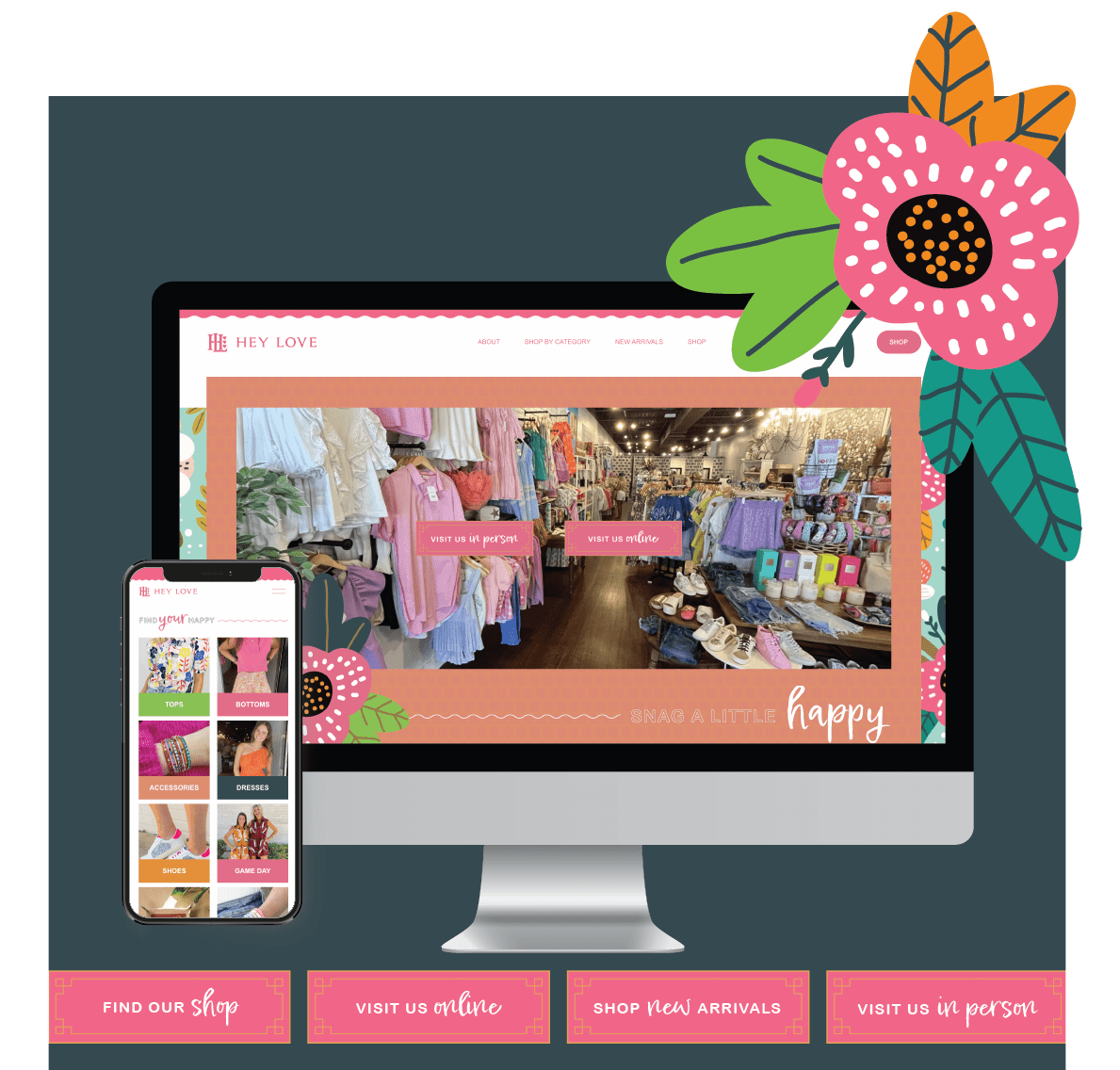 This sweet little boutique in downtown Boerne is packed with personality! The store itself is bursting with energy and color, but their online presence wasn’t quite matching that same vibrancy, so we built Hey Love a fresh, eye-catching website! Their new look is sure to be a hit with visitors - both online and in-person!