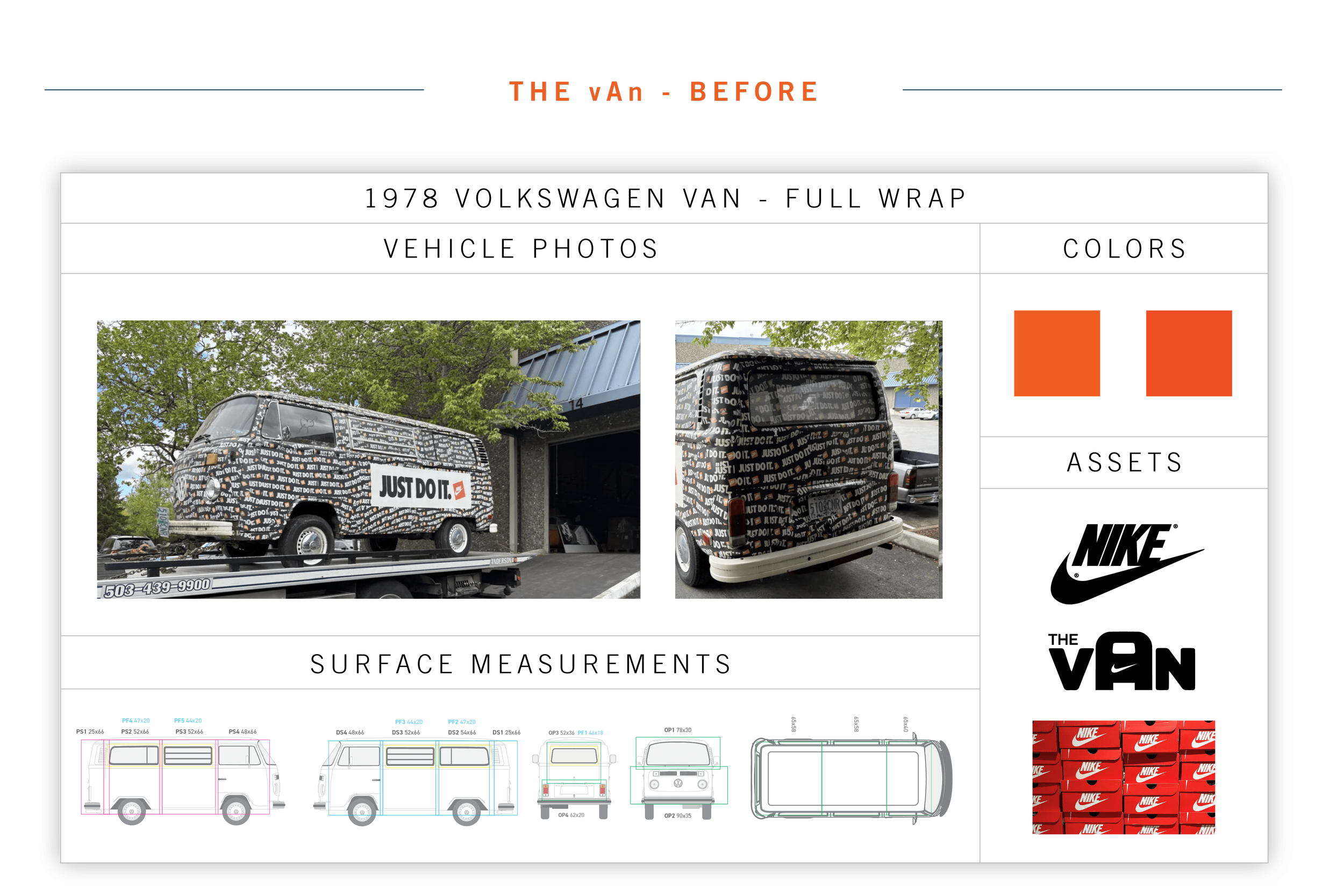 We had the honor of helping Nike design a wrap for the newest addition to this department. The Heat Wagon, a 1968 Volkswagen van (acquired with an outdated design) now proudly reflects the vAn branding along with a new Heat Wagon logo.