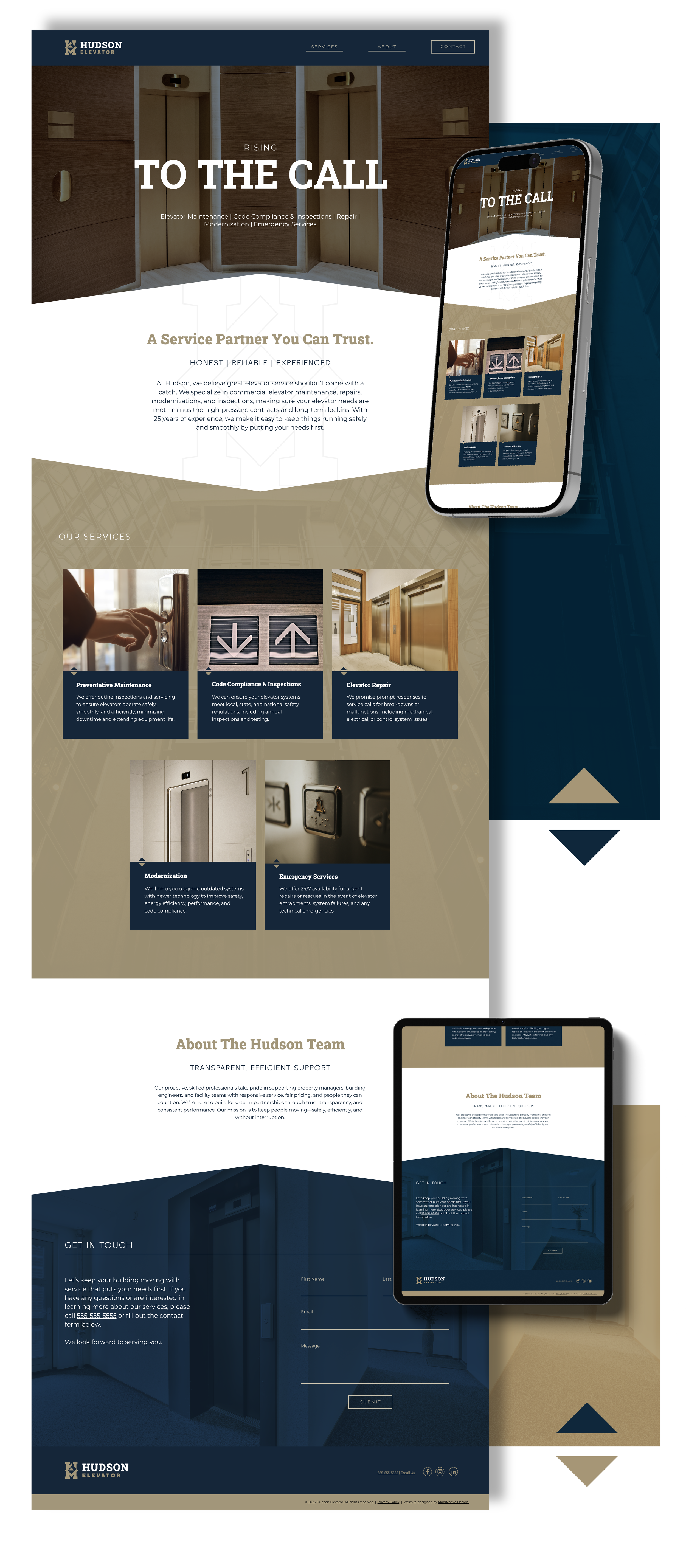 We partnered with Hudson Elevator to create a custom logo & website design that reflects their professionalism and commitment to reliable service. The site is modern, straightforward, and easy to navigate, helping them highlight their full range of elevator solutions and connect with clients across Texas.